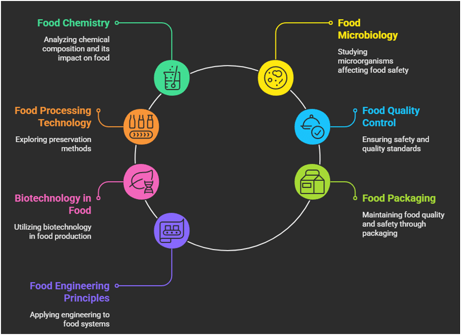 The department also focuses on practical exposure, research, and innovation in emerging domains including food product development, post-harvest technology, food microbiology, and food engineering. The curriculum is carefully designed to meet industry requirements and encourages internships, live projects, and active interaction with the food industry.