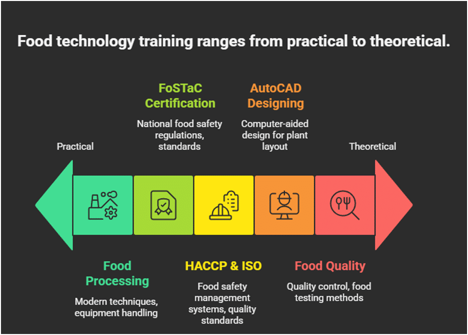 Skill development in computer-aided design for plant layout, equipment design, and engineering drawings.v. Food Quality & Assurance Training