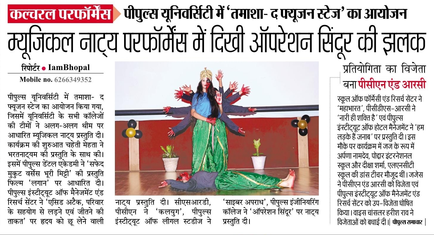 - पीपुल्स यूनिवर्सिटी में ‘तमाशा-द फ्यूजन स्टेज’ का आयोजन, म्यूजिकल नाट्य परफॉर्मेंस में दिखी ऑपरेशन सिंदूर की झलक – 13-Sep-2025