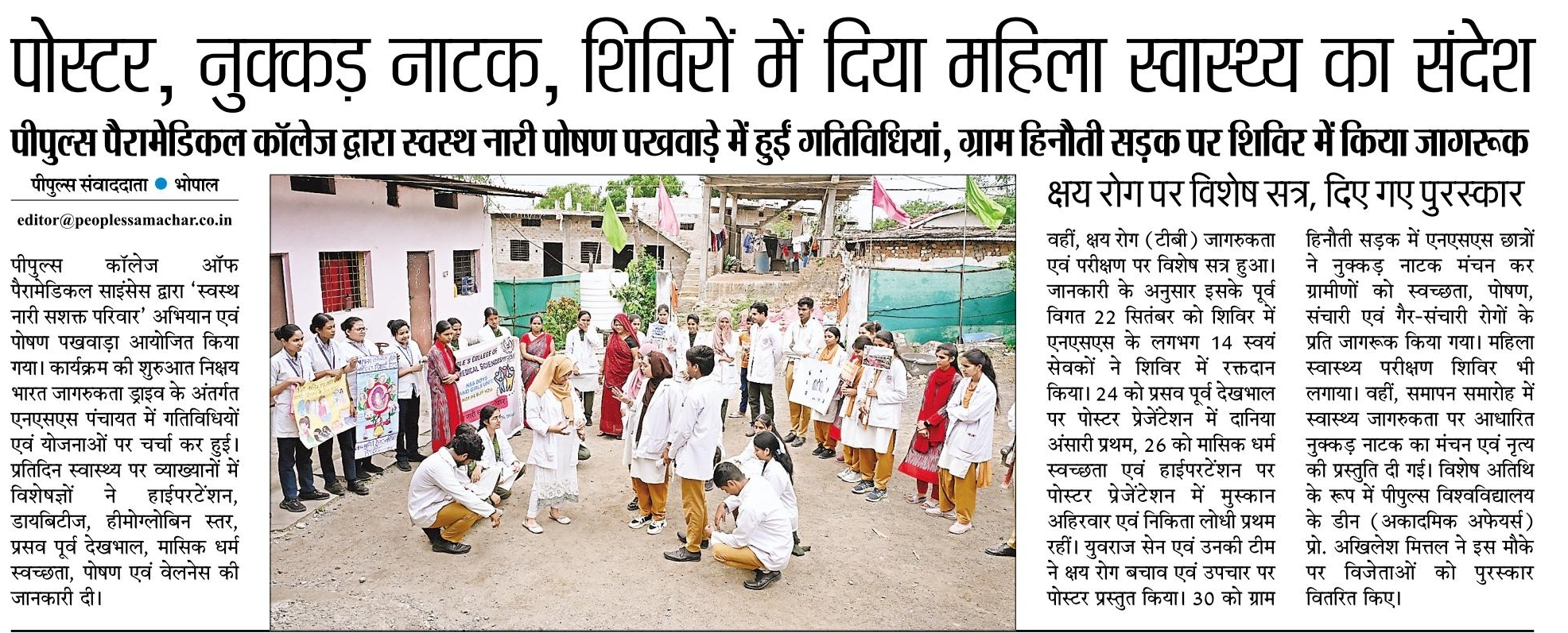 - पीपुल्स पैरामेडिकल कॉलेज द्वारा स्वस्थ नारी पोषण पखवाड़े में हुईं गतिविधियां, ग्राम हिनौती सड़क पर शिविर में किया जागरूक – 05-Oct-2025