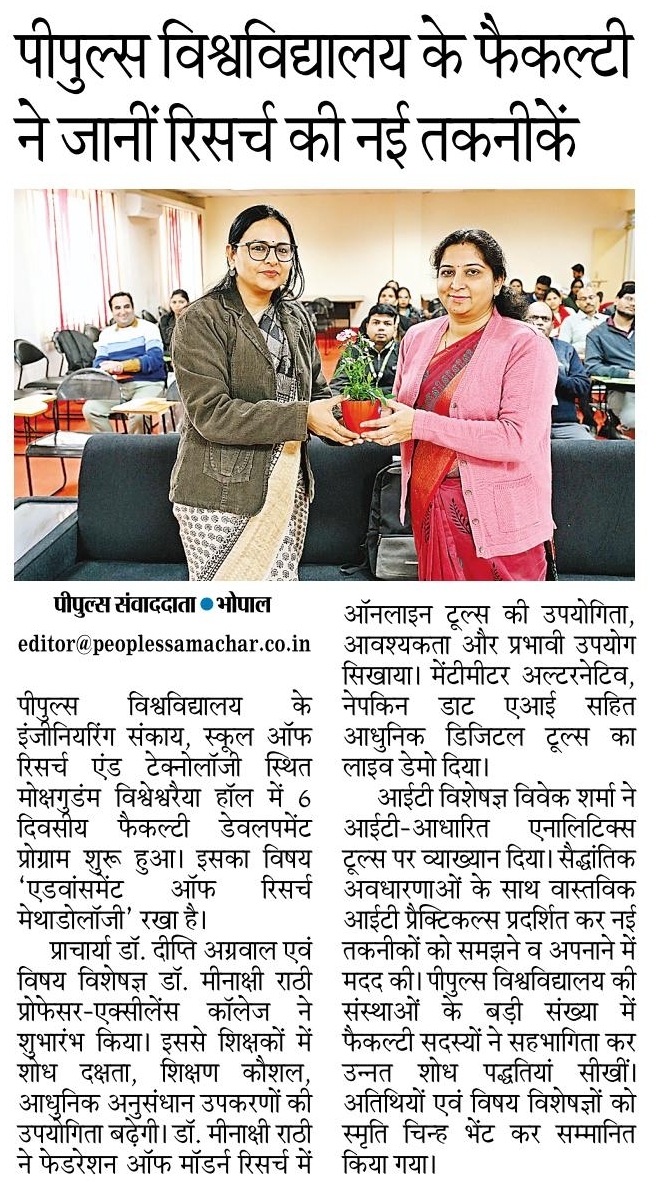 - पीपुल्स विश्वविद्यालय के फैकल्टी ने जानीं रिसर्च की नई तकनीकें – 26-Nov, 2025