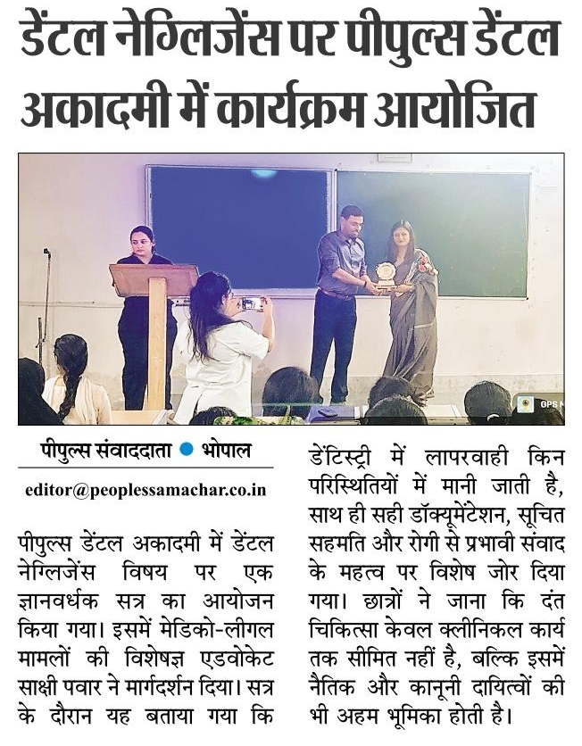 - डेंटल नेग्लिजेंस पर पीपुल्स डेंटल अकादमी में कार्यक्रम आयोजित – 08 Nov, 2025