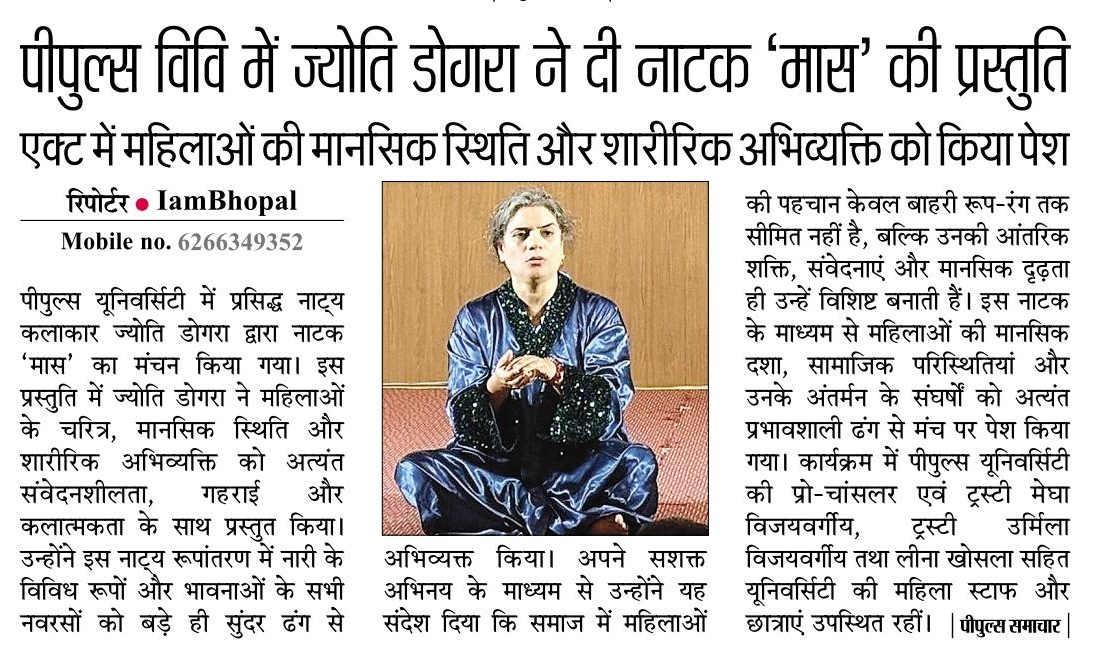 - पीपुल्स विवि में ज्योति डोगरा ने दी नाटक ‘मास’ की प्रस्तुति – 11 Nov, 2025
