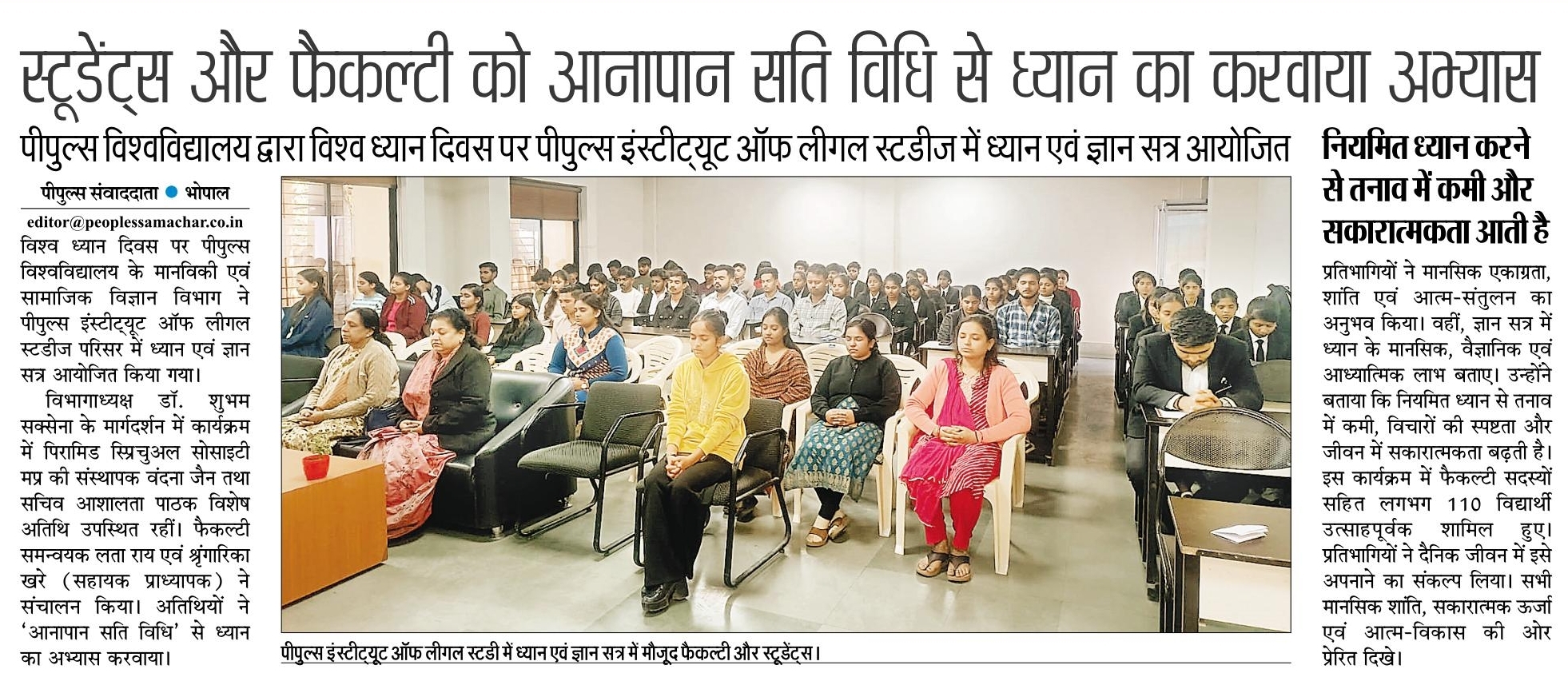 - स्टूडेंट्स और फैकल्टी को आनापान सति विधि से ध्यान का करवाया अभ्यास – 21 Dec, 2025