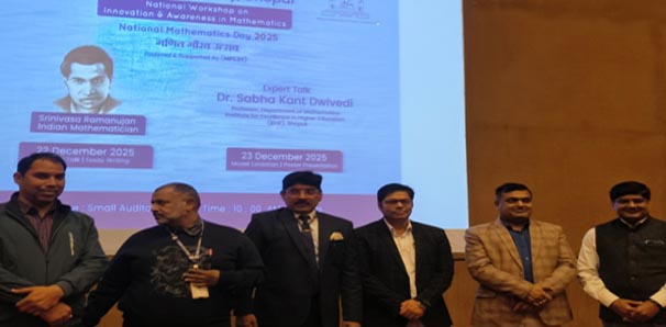 इस अवसर पर आयोजित की गई कार्यशाला, में गणितीय पोस्टर और गणितीय मॉडल मेकिंग प्रतियोगिता हुई जिसमे करीब 250 छात्र-छात्राओं ने हिस्सा लिया जिसका मुख्य उद्देश्य युवाओं में गणित के प्रति रुचि बढ़ाना, तार्किक एवं वैज्ञानिक दृष्टिकोण विकसित करना तथा यह संदेश देना था कि गणित देश के वैज्ञानिक, तकनीकी और आर्थिक विकास की सशक्त आधारशिला है। इस समारोह में मुख्य वक्ता के रूप में डॉ. सभा कांत द्विवेदी उच्च शिक्षा उत्कृष्टता संस्थान, भोपाल अपने उदबोधन में छात्र छात्राओं को दुनिया भर में स्वदेसी अनुसंधान को बढ़ावा देने के लिए प्रेरित एवं उत्साहित किया, उन्होंने अपने उद्बोधन में कई उदाहरण प्रस्तुत करते हुए कालिदास एवं विद्योत्तमा की कहानी को गणित से जोड़ कर छात्र एवं छात्राओं को समझया एवं मच्छर एवं साप का उदाहरण देते हुए यह भी बताया कि गणित के भय (फोबिया) को कैसे भगाया जा सकता हैं और इसे कैसे आसानी से समझा जा सकता हैI